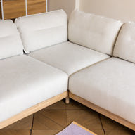 The frame made of light oiled oak gives the sofa landscape natural warmth and simple elegance. Soft cushions, gentle curves, and a well-balanced seat height and depth create a harmonious blend of design and comfort.
