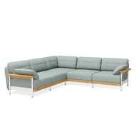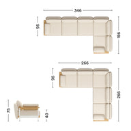 The Mio corner sofa as a 5-seater offers generous space for five to seven people. You can choose between solid oak armrests with metal connectors or upholstered armrests with oak legs. The sofa can also be mirrored or assembled in a different configuration.