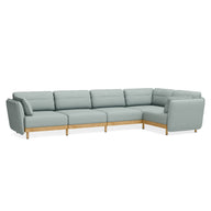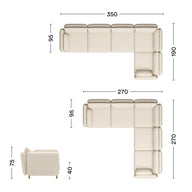 The Mio corner sofa as a 5-seater offers generous space for five to seven people. You can choose between solid oak armrests with metal connectors or upholstered armrests with oak legs. The sofa can also be mirrored or assembled in a different configuration.