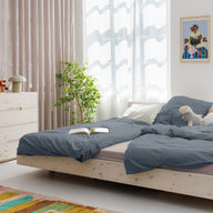 Aisling wird im Garment-Dye-Verfahren gefärbt – das bedeutet, der Stoff wird erst nach dem Nähen eingefärbt. Dieses Verfahren ist ressourcenschonend und verleiht dem Material eine leicht unregelmäßige Struktur mit einem natürlich ausgewaschenen Look.