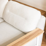 The frame made of light oiled oak gives the sofa natural warmth and timeless elegance. Soft cushions, gentle curves, and a well-balanced seat height and depth create a perfect harmony of design and comfort.